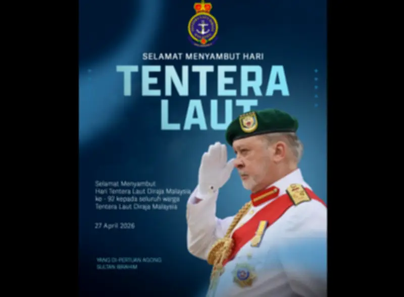 YANG di-Pertuan Agong, Sultan Ibrahim, hari ini menzahirkan ucapan tahniah sempena ulang tahun ke-92 Tentera Laut Diraja Malaysia (TLDM) kepada seluruh warga TLDM, veteran, dan mereka yang pernah berkhidmat dalam pasukan tersebut.