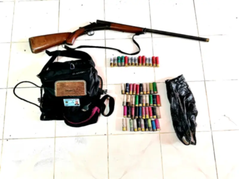 Polis turut merampas satu senapang patah laras tunggal kaliber 12, beberapa pusingan peluru hidup, dan selongsong peluru terpakai pelbagai jenama di tempat kejadian.
