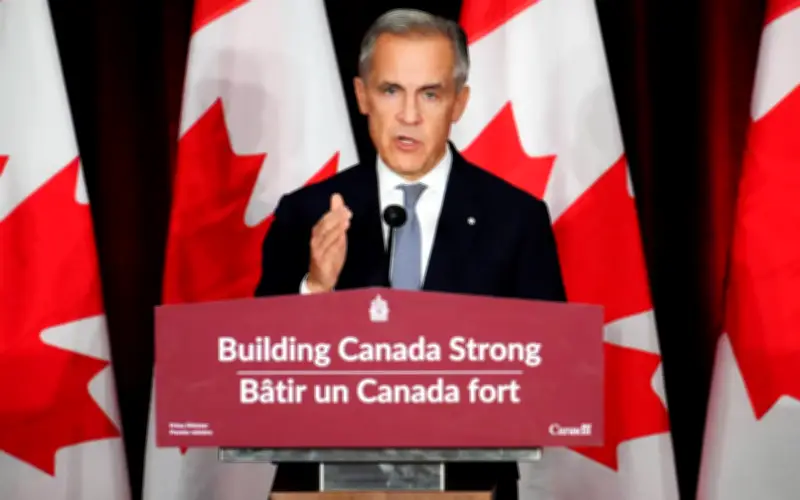 Perdana Menteri Kanada menekankan kepentingan kedaulatan ekonomi dan perpaduan nasional sambil menggariskan rancangan kerajaan untuk mengutamakan bahan dan tenaga kerja buatan Kanada dalam projek masa depan. "Kita akan membina Kanada yang kuat dengan keluli Kanada, aluminium Kanada, kayu Kanada, dan pekerja Kanada," tegas Carney dengan penuh semangat.