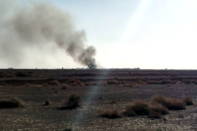 Media negara Iran berkongsi imej serpihan hangus yang berselerak di kawasan padang pasir, dengan asap masih naik dari tapak kejadian. Gambar-gambar ini disediakan oleh Kor Pengawal Revolusi Iran (IRGC) melalui laman web rasmi Sepah News.